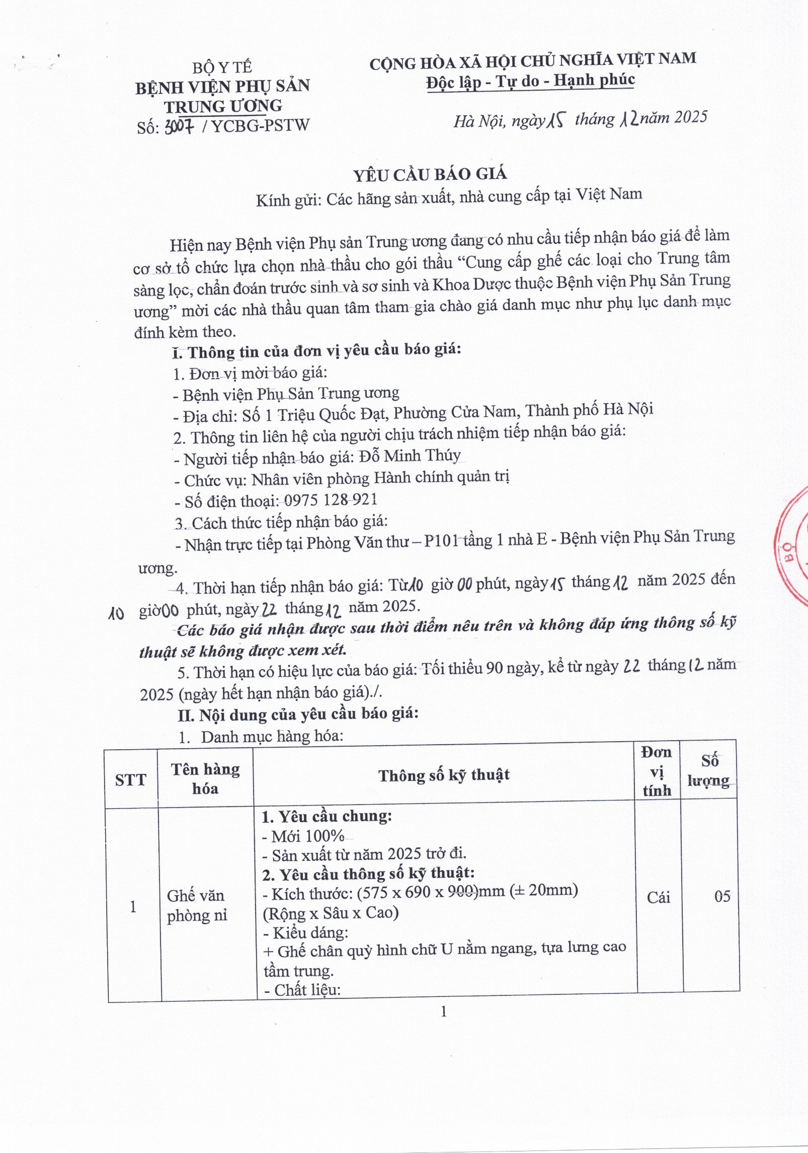 Yêu cầu báo giá số 3007/YCBG-PSTW ngày 15/12/2025