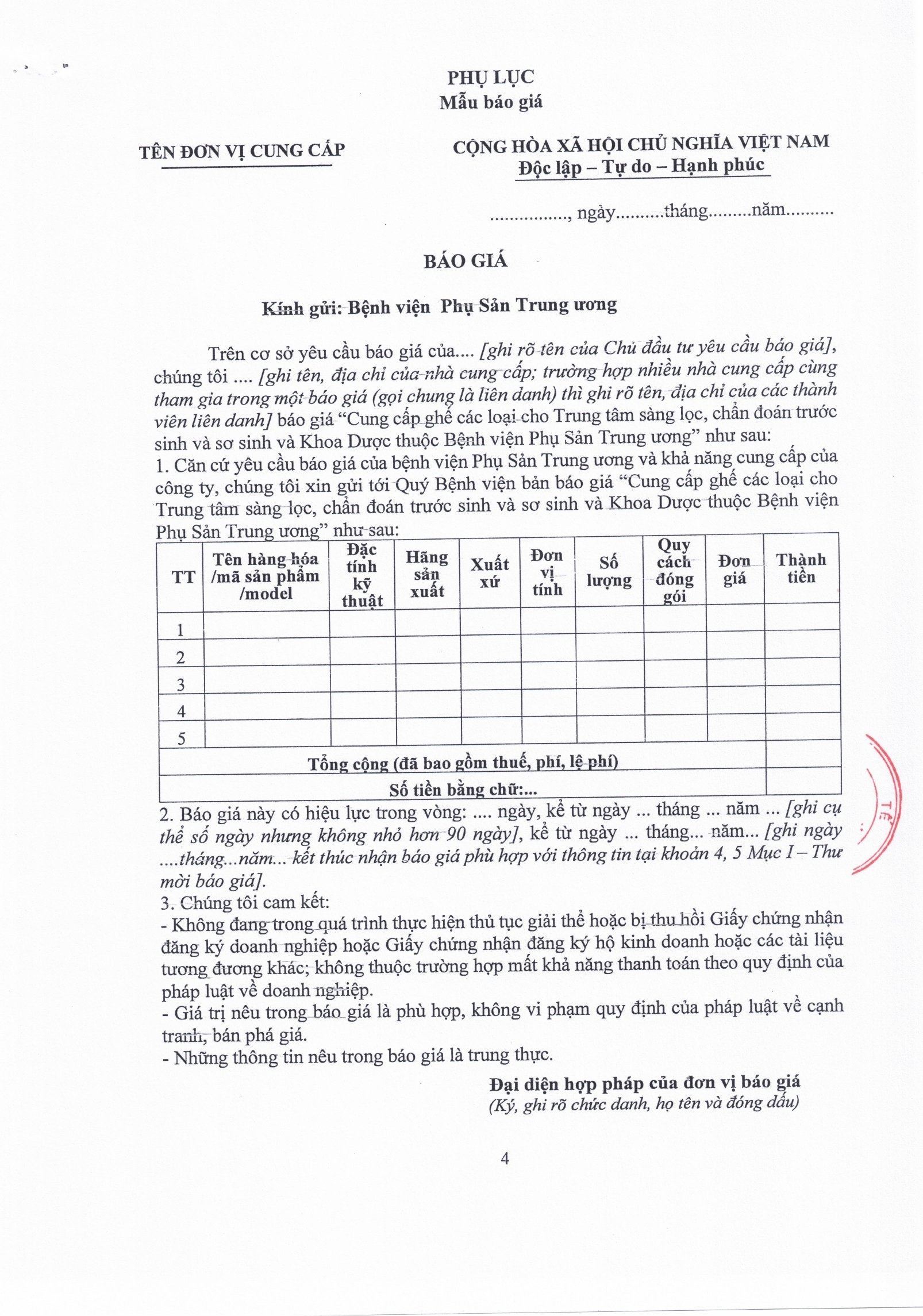 Kính gửi: Các hãng sản xuất, nhà cung cấp tại Việt Nam