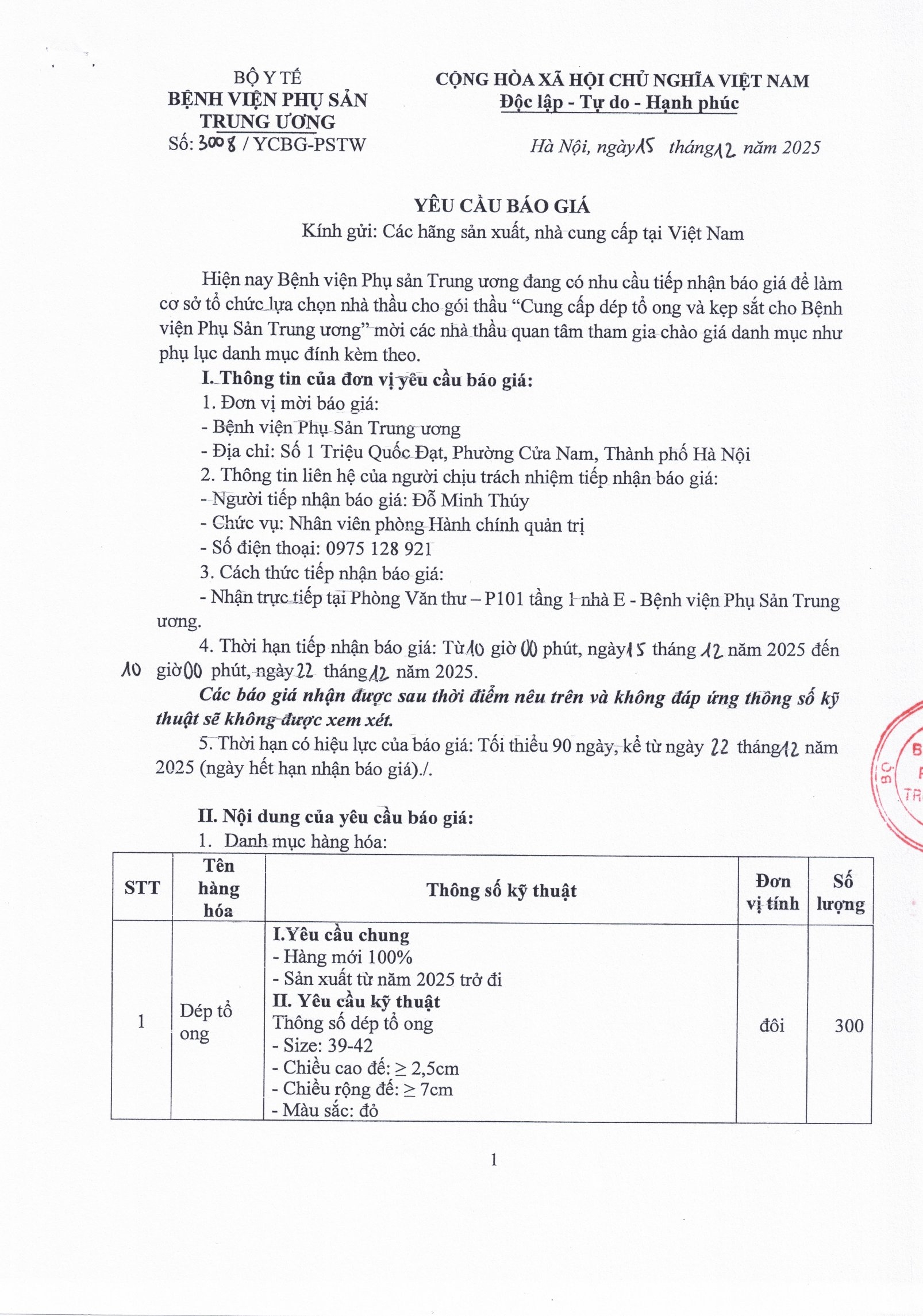 Yêu cầu báo giá số 3006/YCBG-PSTW ngày 15/12/2025