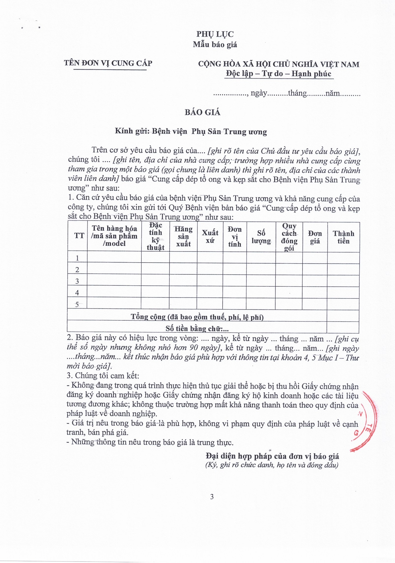 Kính gửi: Các hãng sản xuất, nhà cung cấp tại Việt Nam