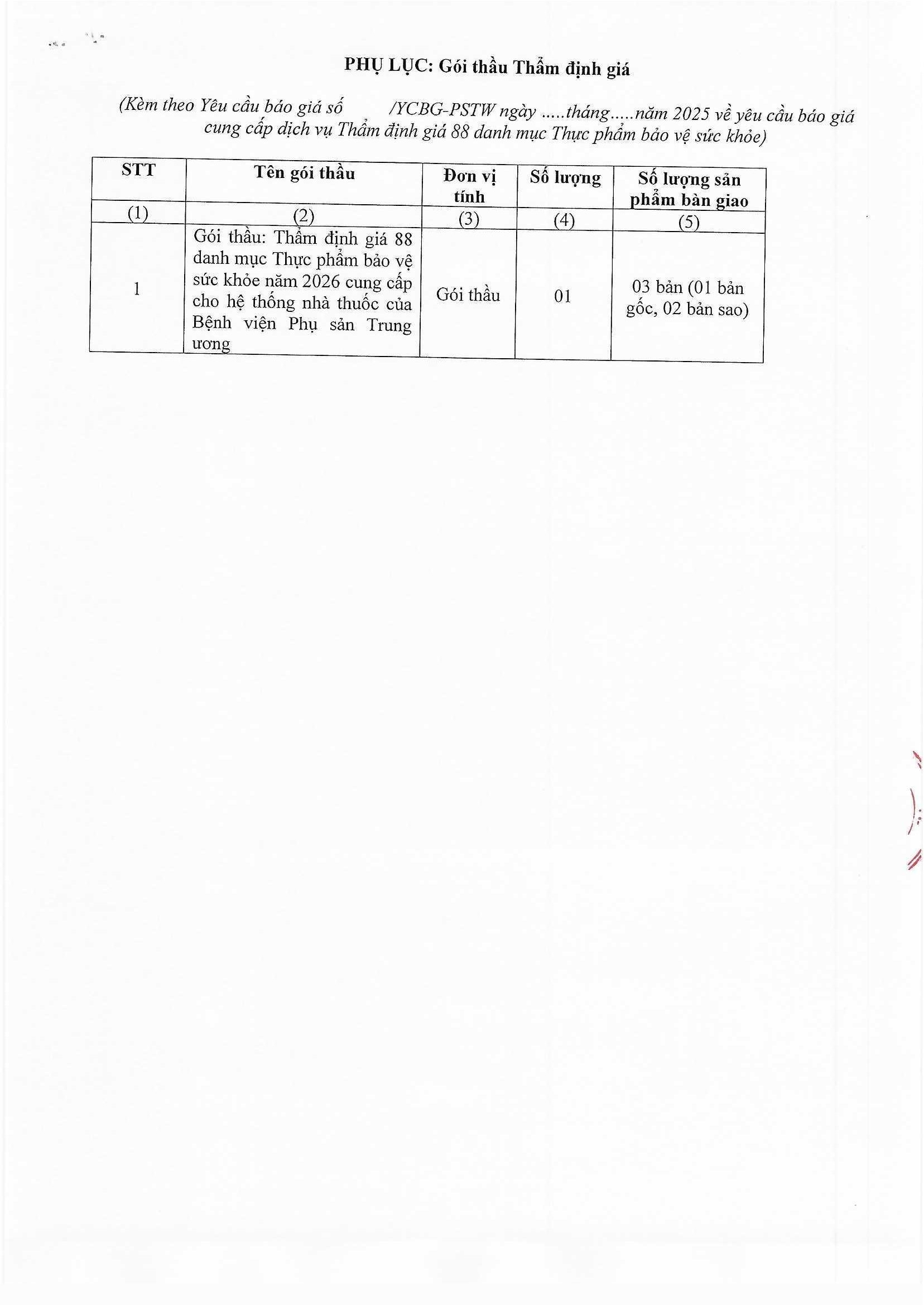 Yêu cầu báo giá số 3080/YCBG-PSTW ngày 19/12/2025
