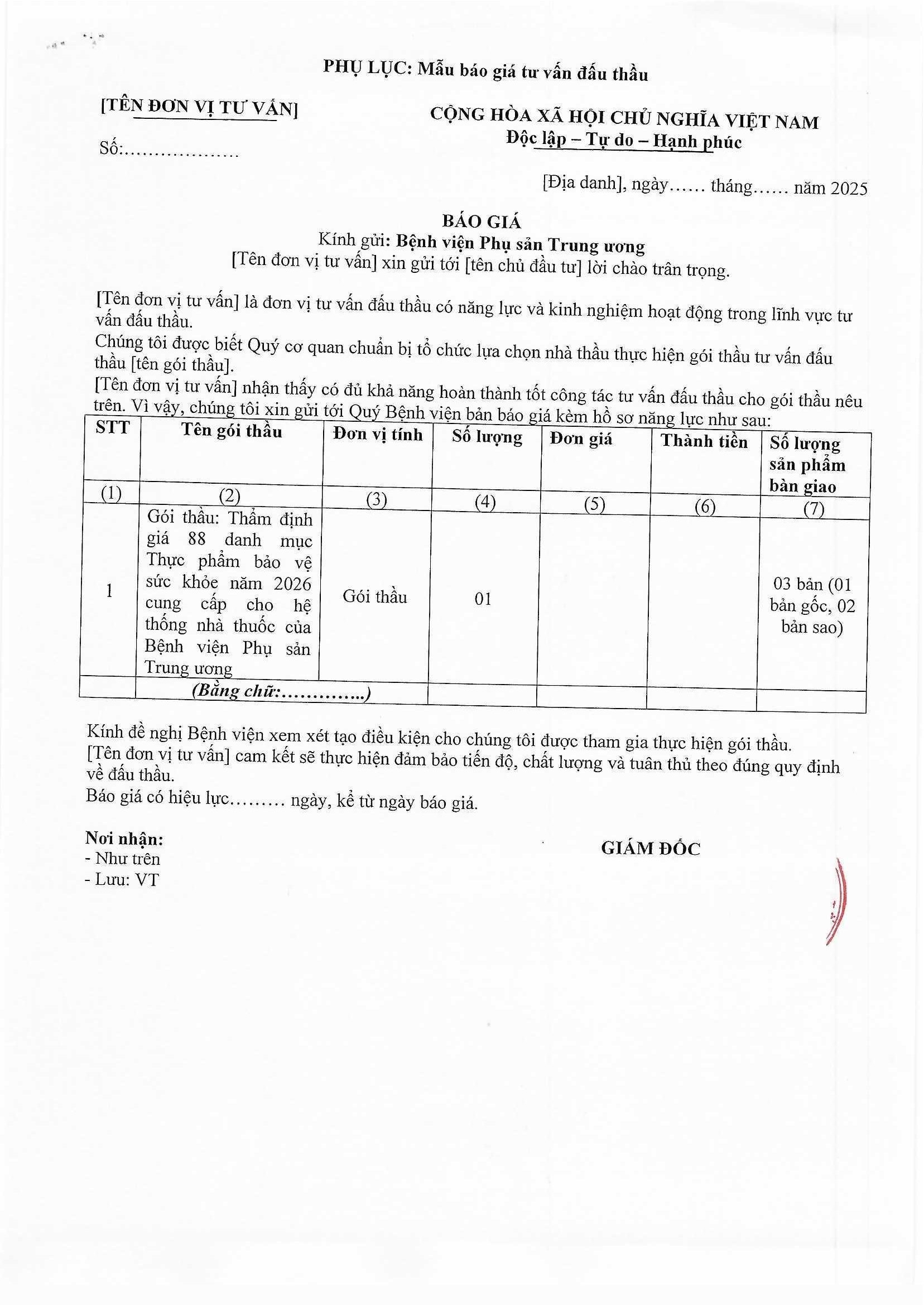 Kính gửi: Các đơn vị cung cấp dịch vụ Thẩm định giá