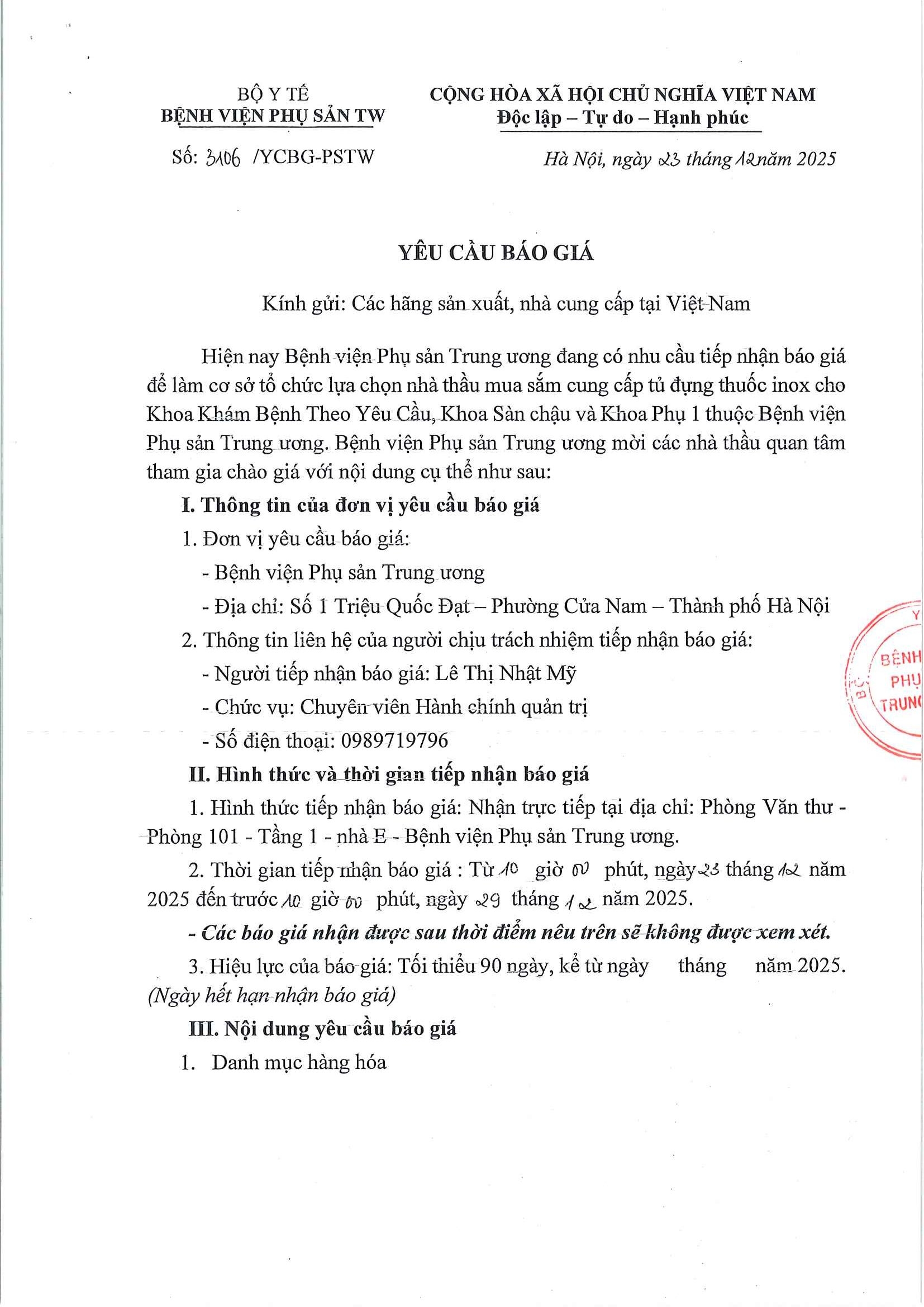 Yêu cầu báo giá số 3106/YCBG-PSTW ngày 23/12/2025