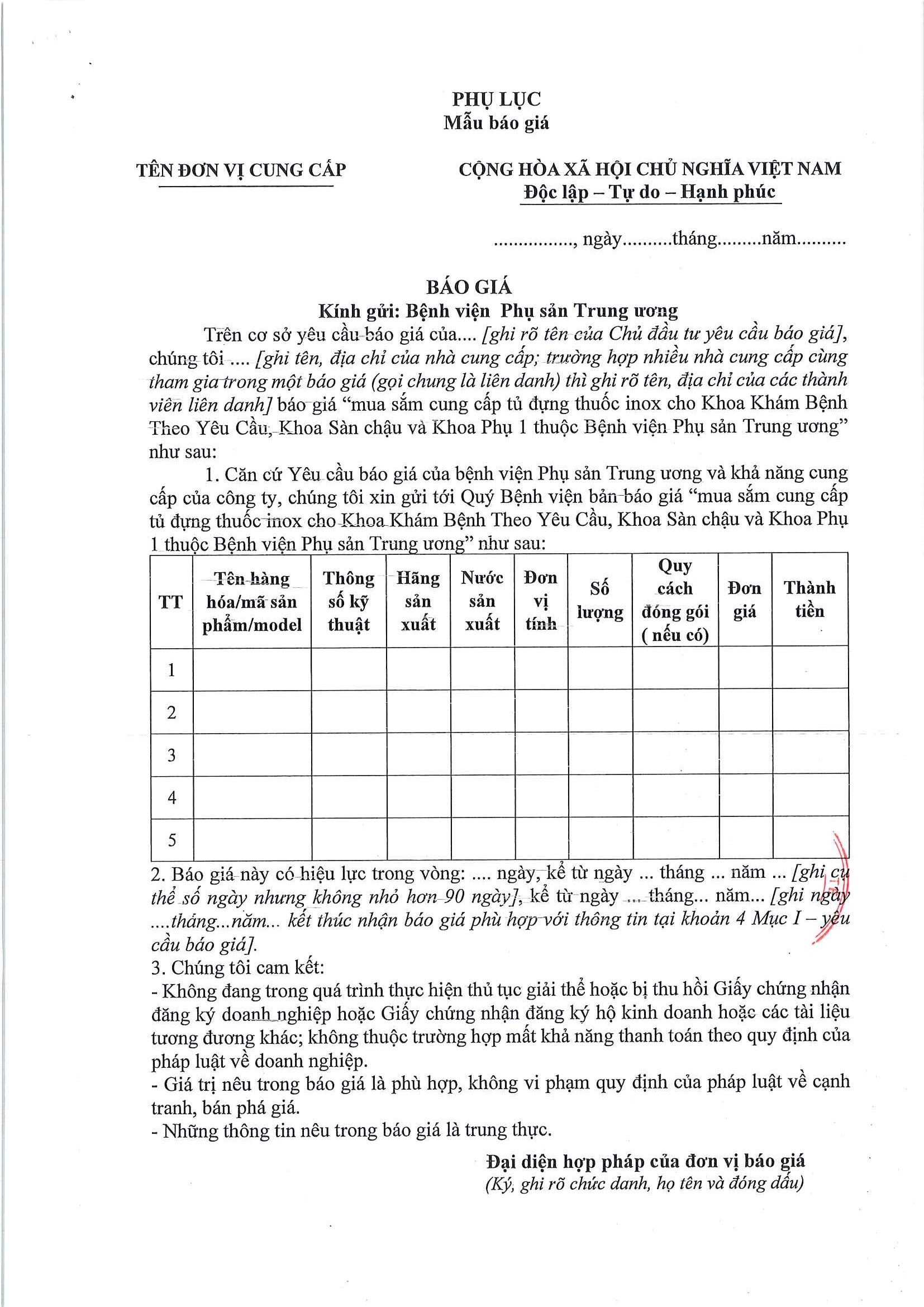 Kính gửi: Các hãng sản xuất, nhà cung cấp tại Việt Nam
