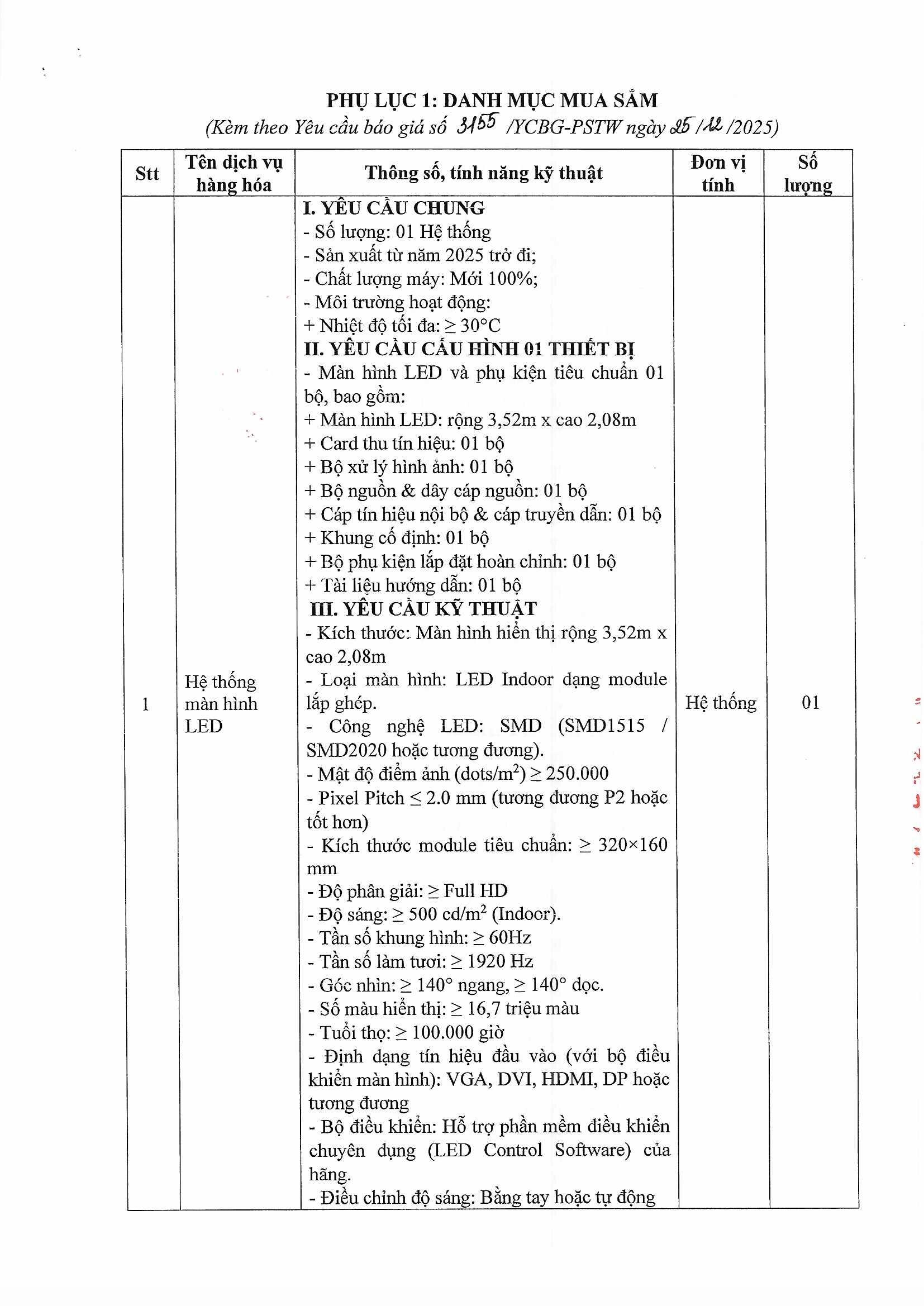 Yêu cầu báo giá số 3136/YCBG-PSTW ngày 25/12/2025