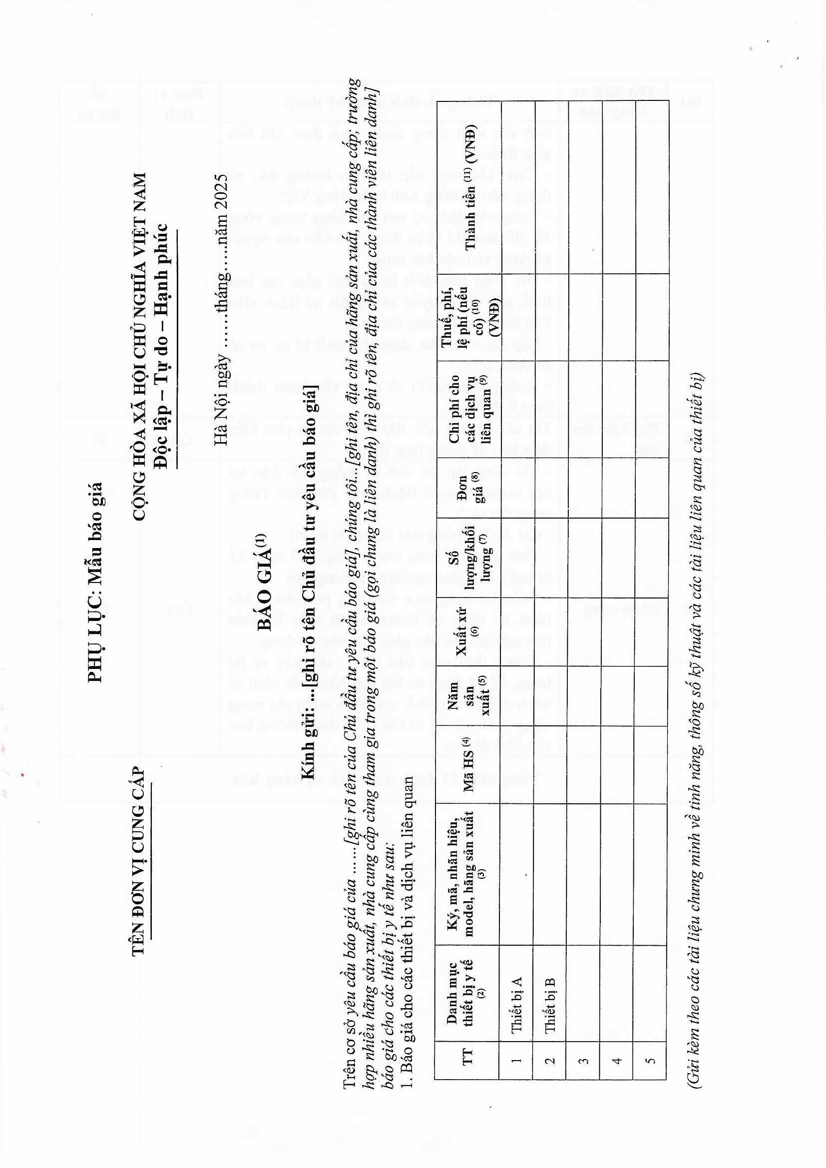Kính gửi: Các hãng sản xuất, nhà cung cấp tại Việt Nam