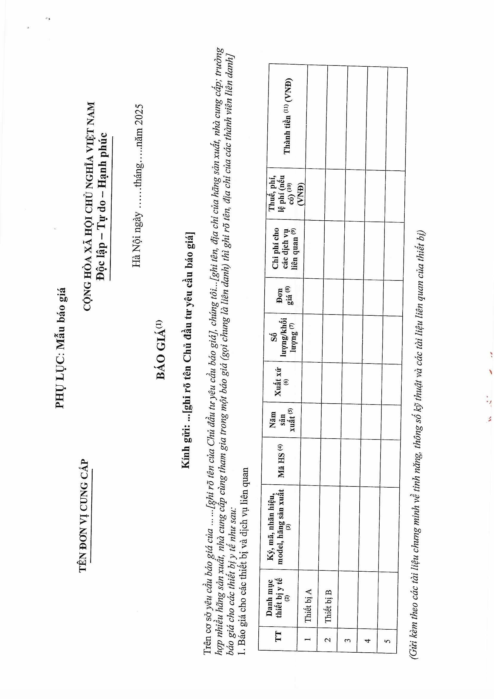 Kính gửi: Các hãng sản xuất, nhà cung cấp tại Việt Nam