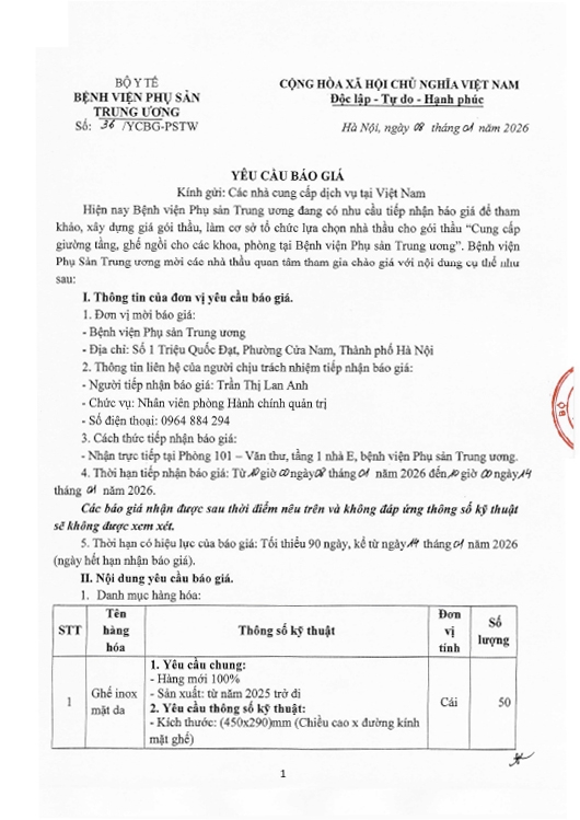 Yêu cầu báo giá số 36/YCBG-PSTW ngày 08/01/2026
