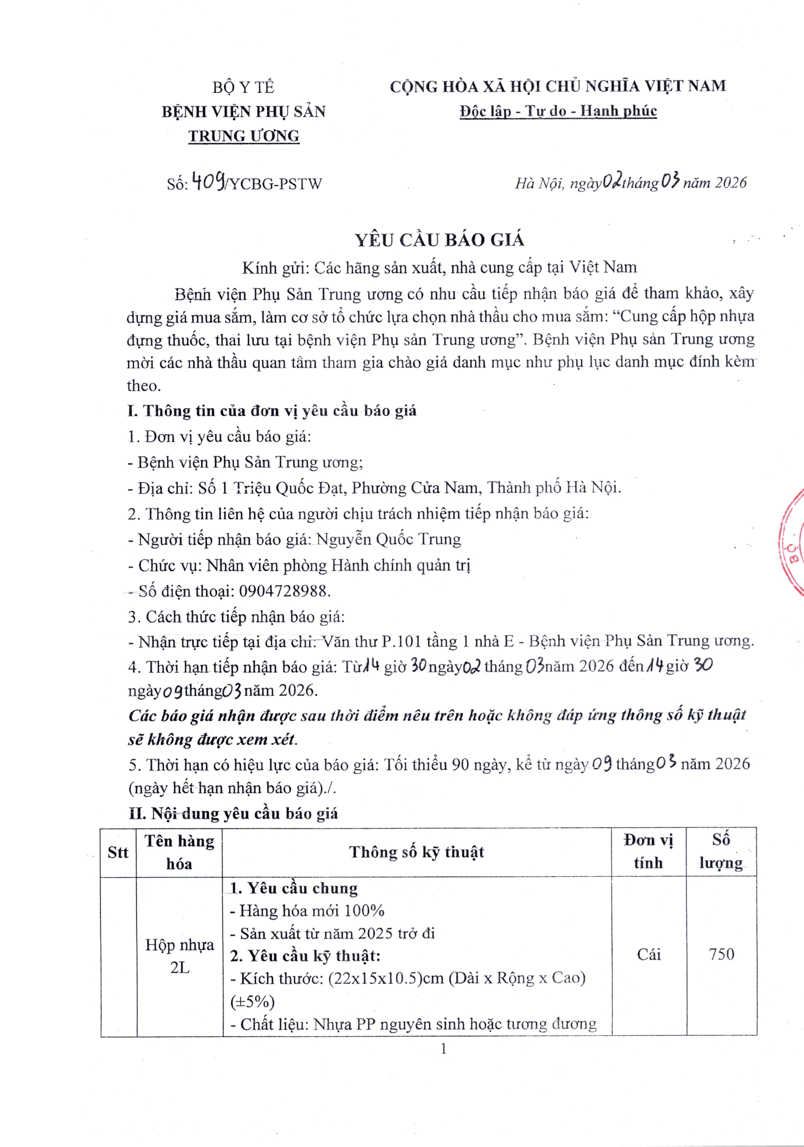 Yêu cầu báo giá số 409/YCBG-PSTW ngày 02/03/2026