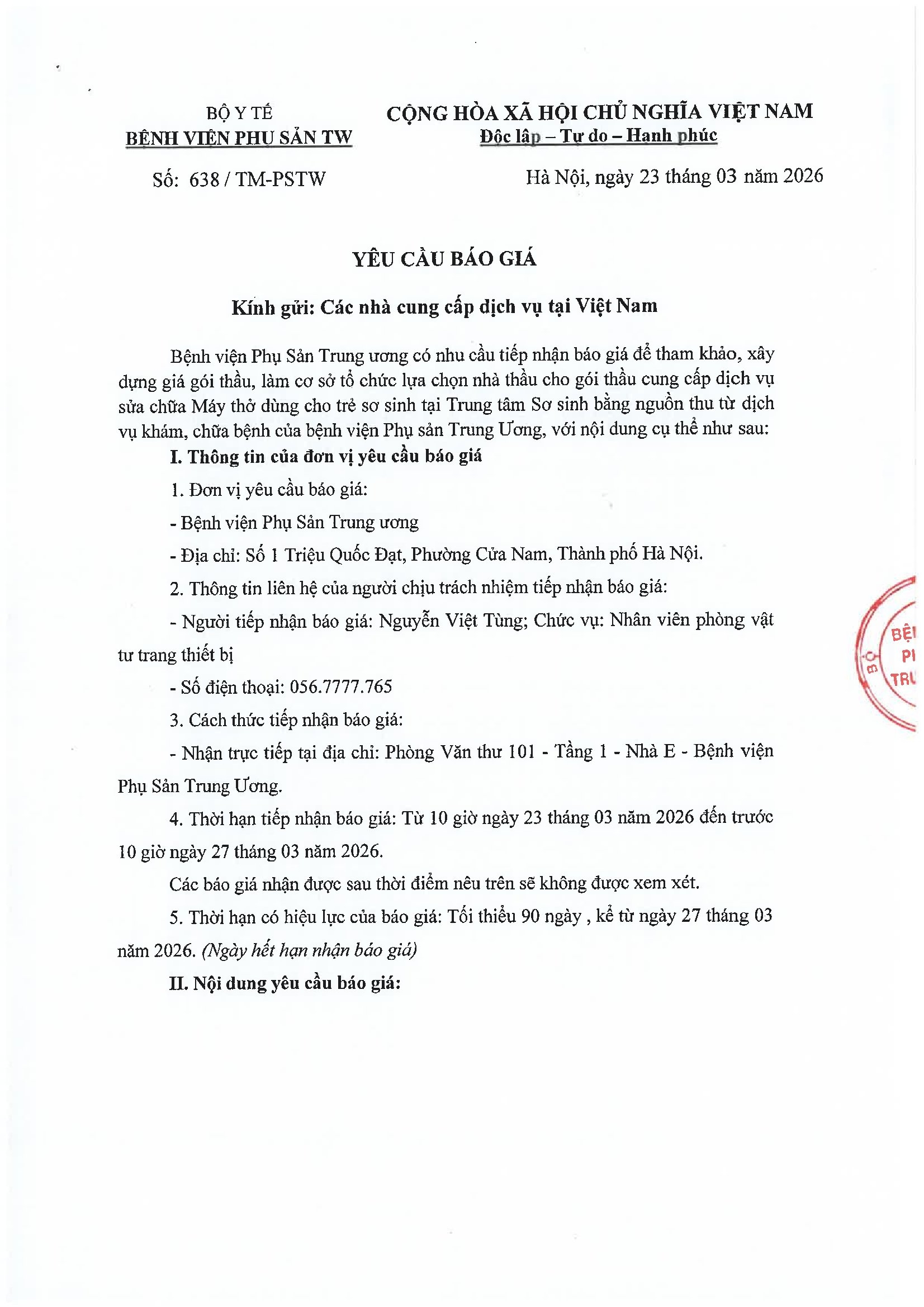 Yêu cầu báo giá số 638/YCBG-PSTW ngày 23/03/2026