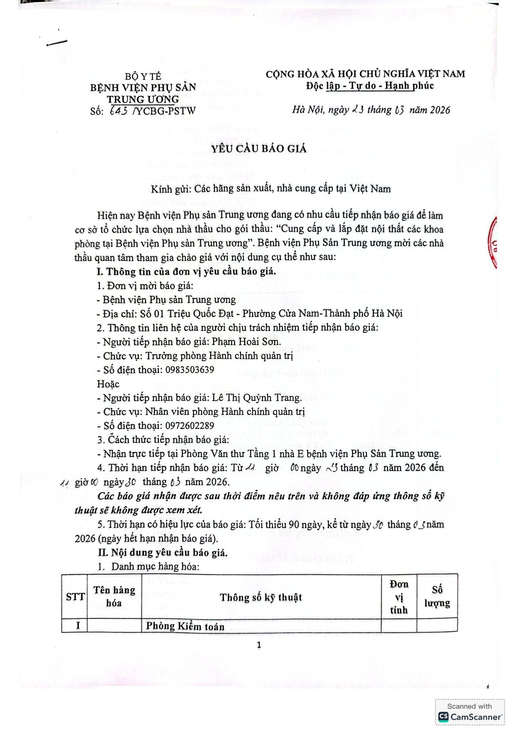 Yêu cầu báo giá số 643/YCBG-PSTW ngày 23/03/2026