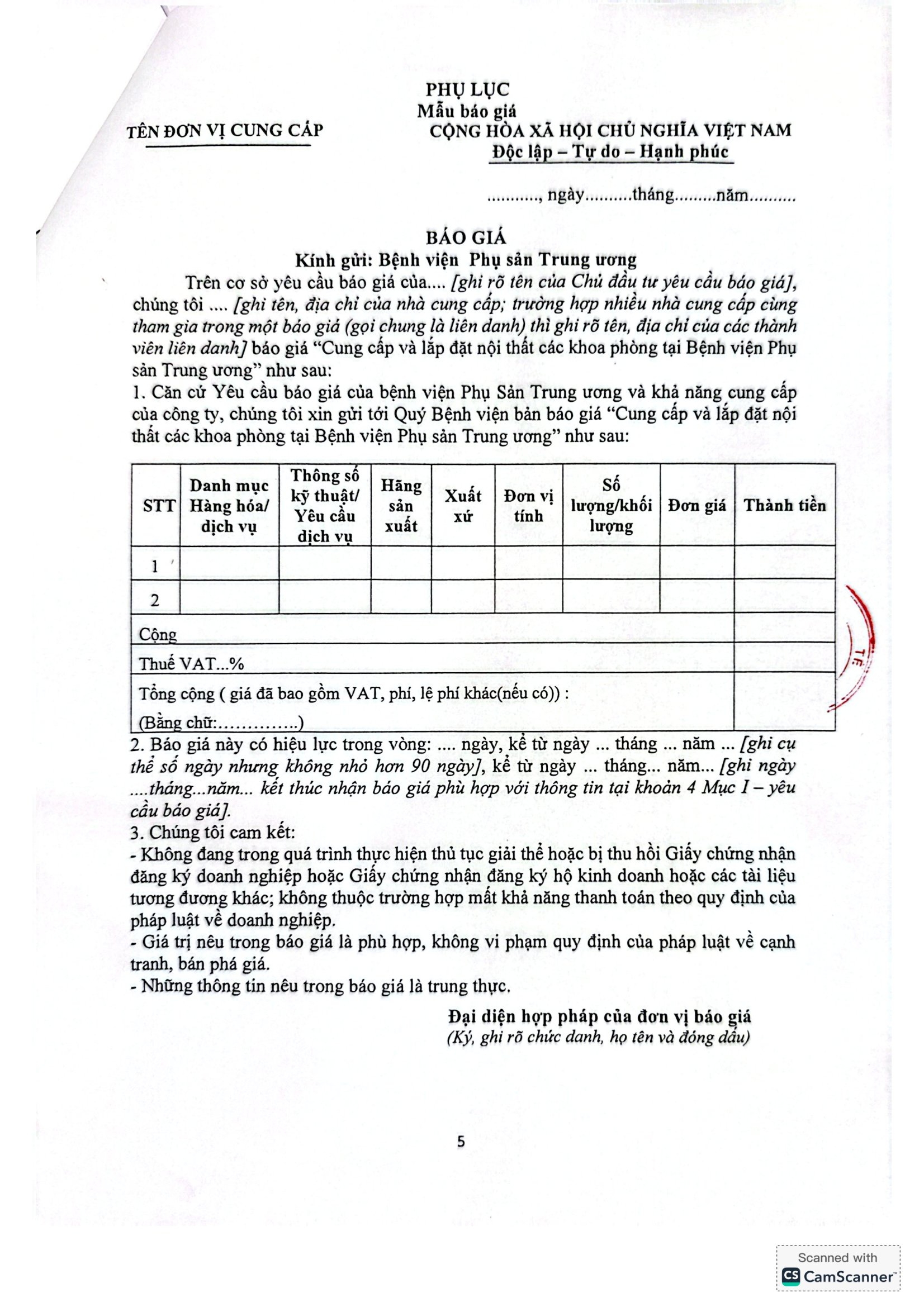 Kính gửi: Các hãng sản xuất, nhà cung cấp tại Việt Nam