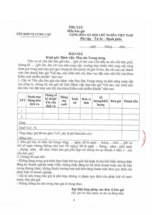 Kính gửi: Các hãng sản xuất, nhà cung cấp tại Việt Nam