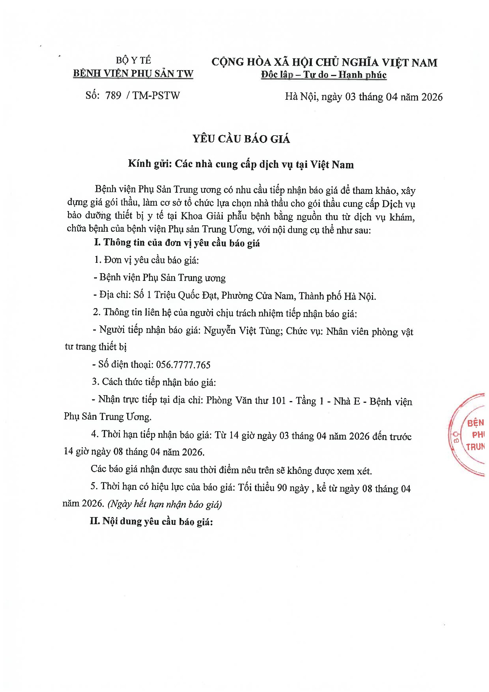 Yêu cầu báo giá số 789/YCBG-PSTW ngày 03/04/2026