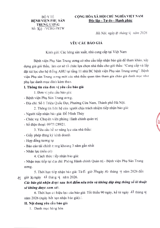 Yêu cầu báo giá số 855/YCBG-PSTW ngày 10/04/2026