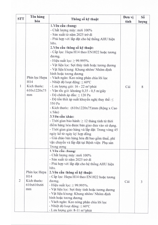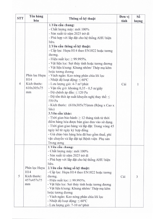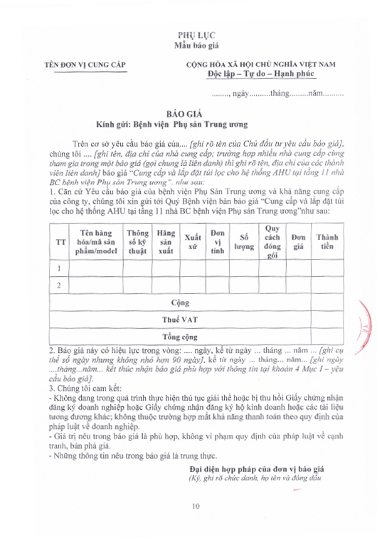Kính gửi: Các hãng sản xuất, nhà cung cấp tại Việt Nam