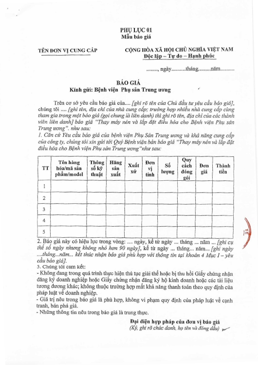 Kính gửi: Các hãng sản xuất, nhà cung cấp tại Việt Nam