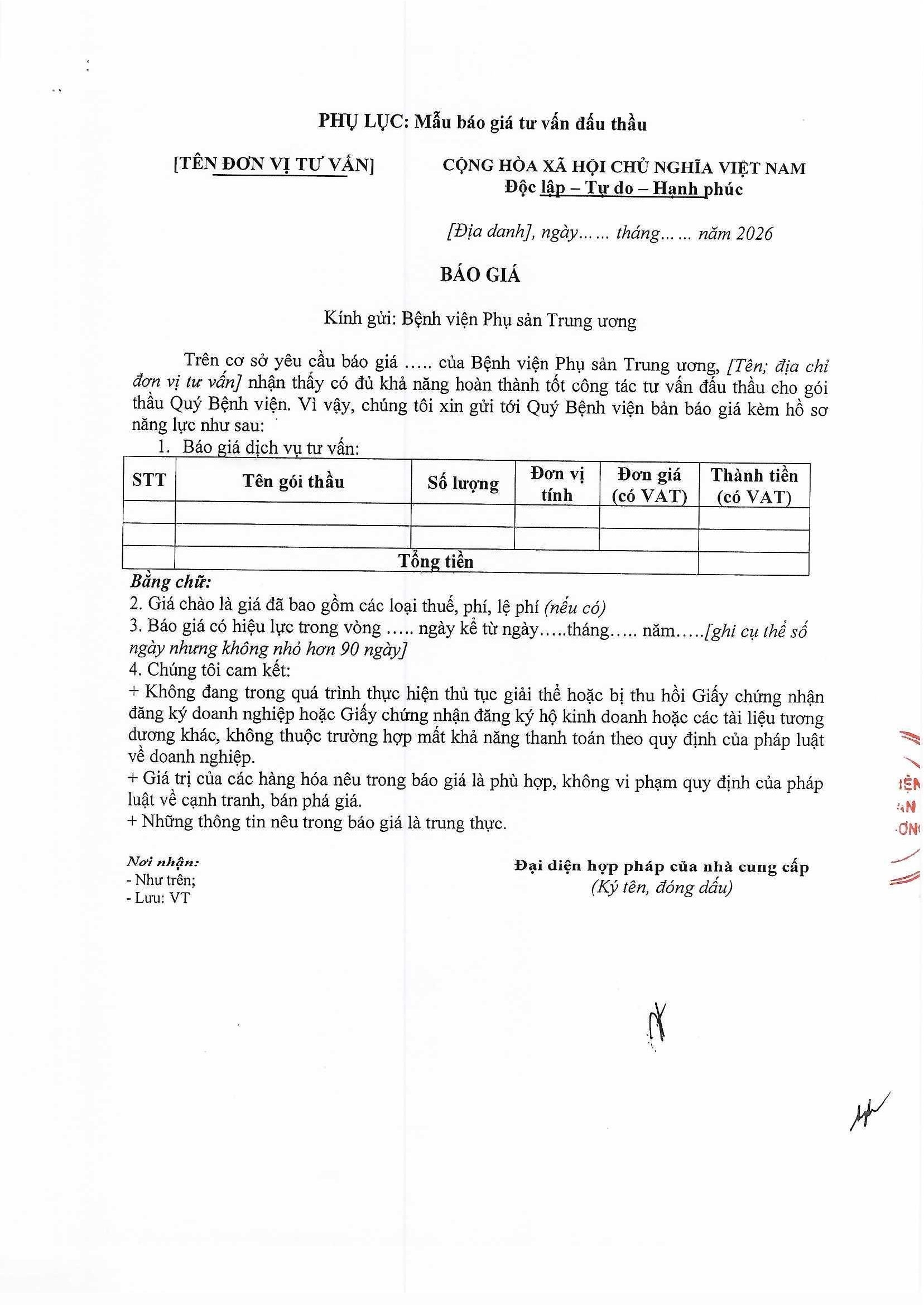 Kính gửi: Các đơn vị cung cấp dịch vụ tư vấn