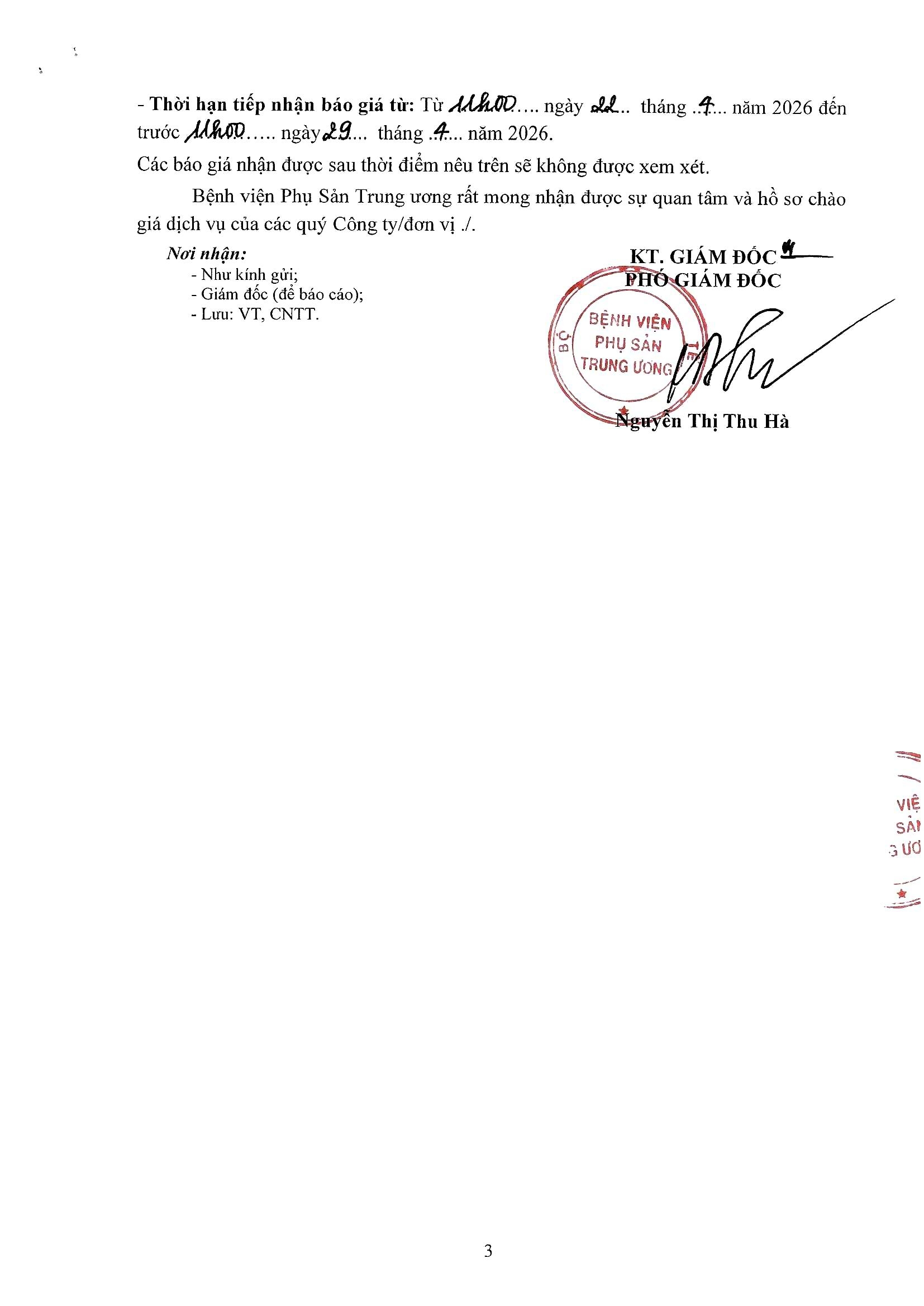 Thông báo của bệnh viện