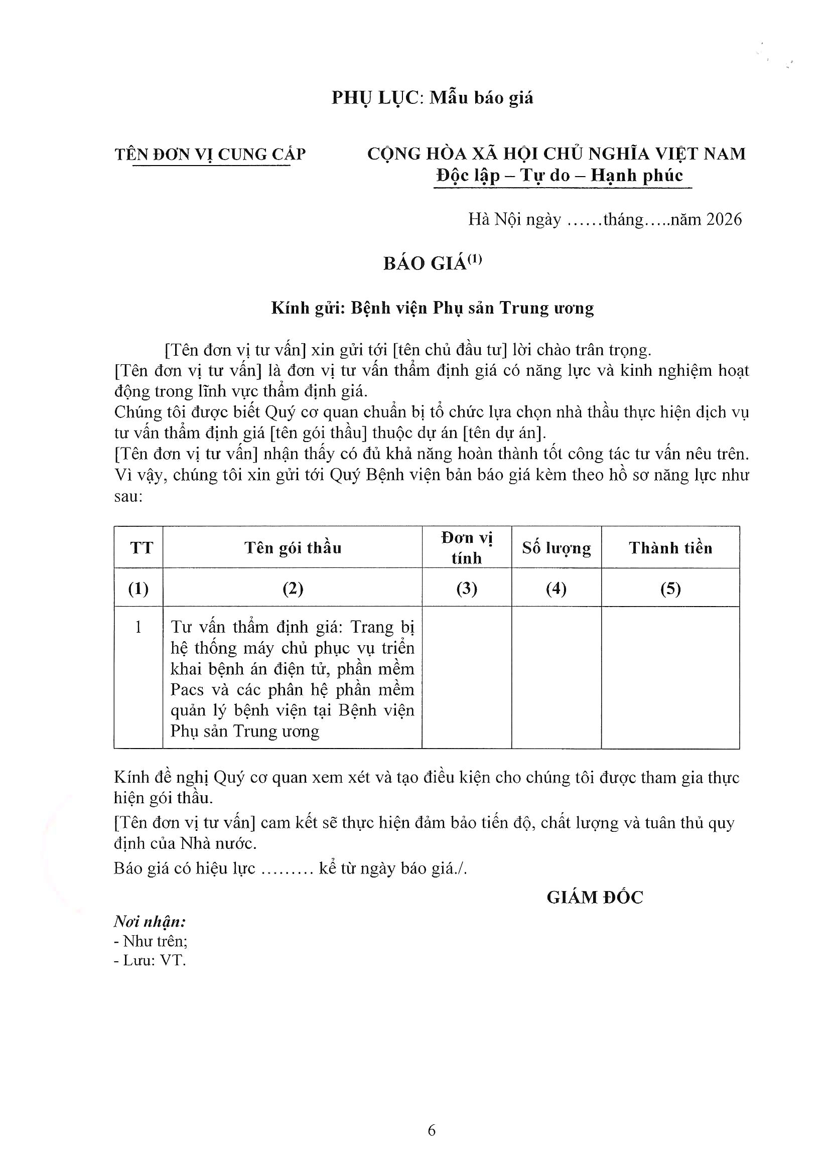 Kính gửi: Các Quý công ty thẩm định giá