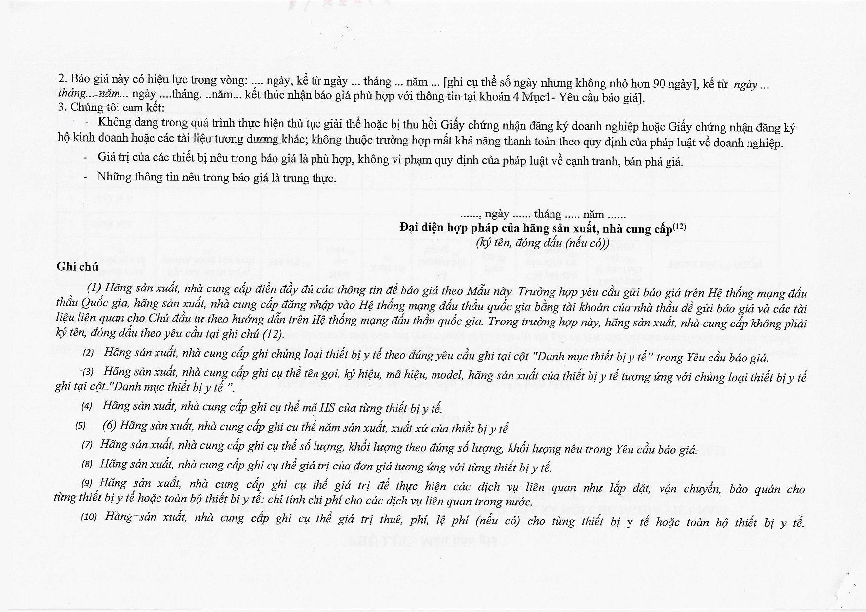 Kính gửi: Các hãng sản xuất, nhà cung cấp tại Việt Nam