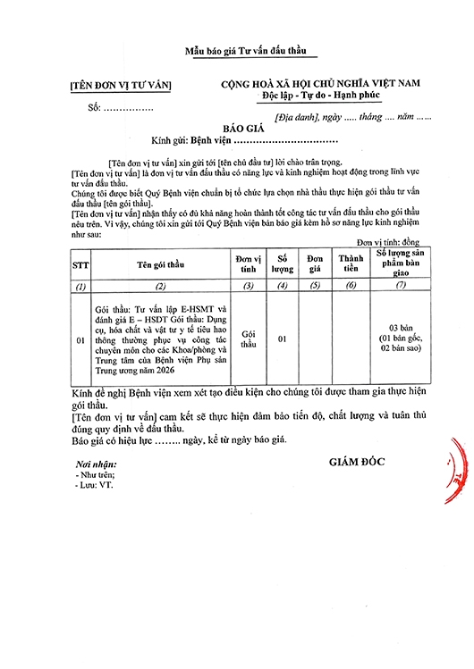 Kính gửi: Các hãng sản xuất, nhà cung cấp tại Việt Nam