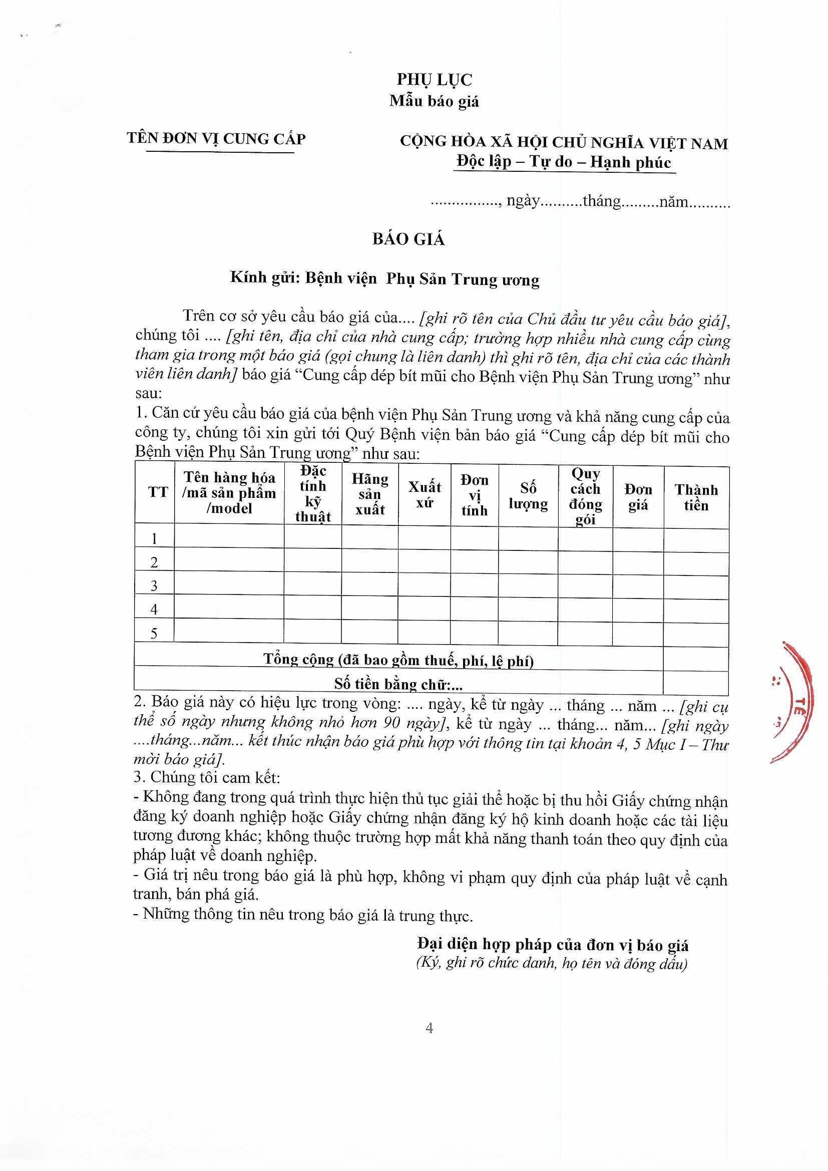 Kính gửi: Các hãng sản xuất, nhà cung cấp tại Việt Nam