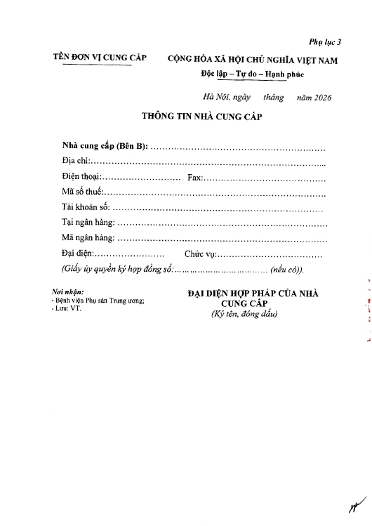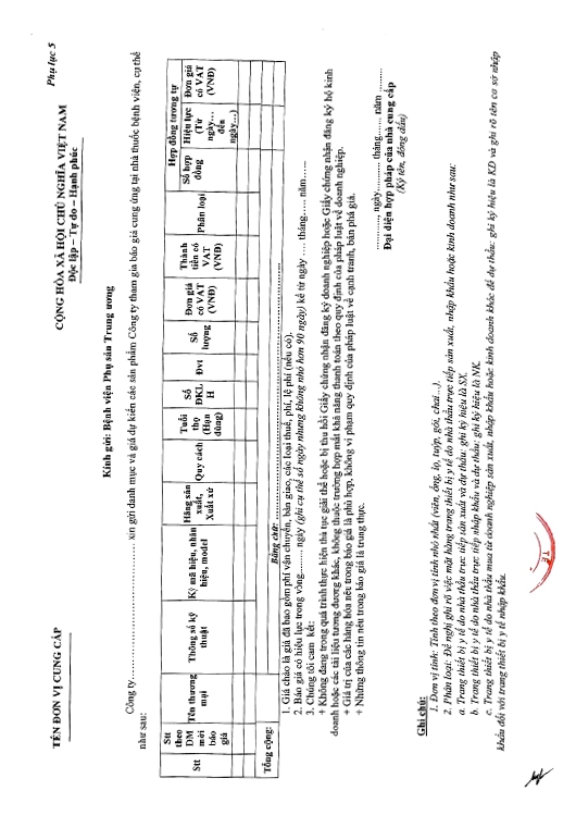 Kính gửi: Các hãng sản xuất, nhà cung cấp tại Việt Nam