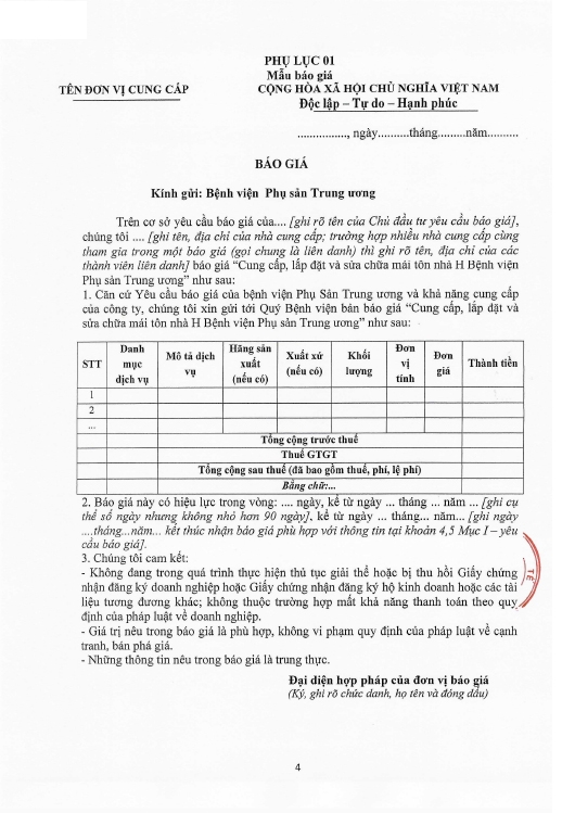 Kính gửi: Các hãng sản xuất, nhà cung cấp tại Việt Nam
