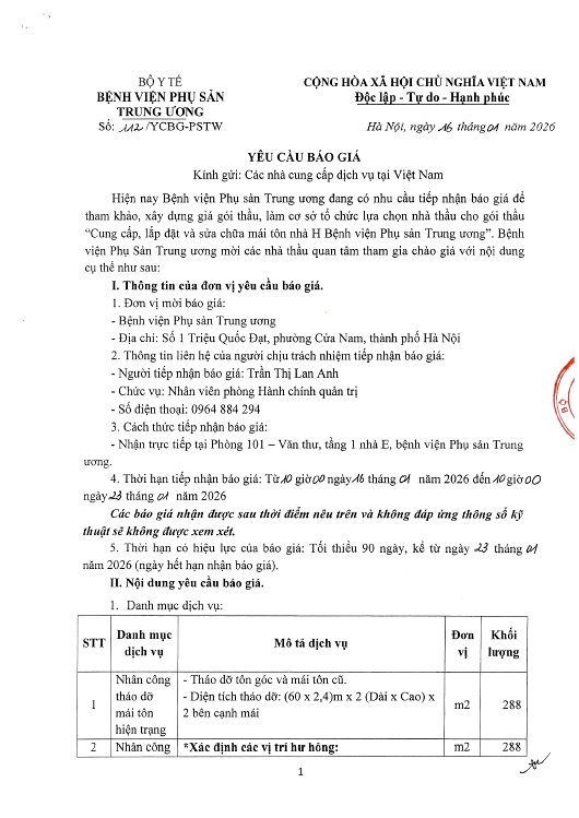Kính gửi: Các nhà cung cấp tại Việt Nam
