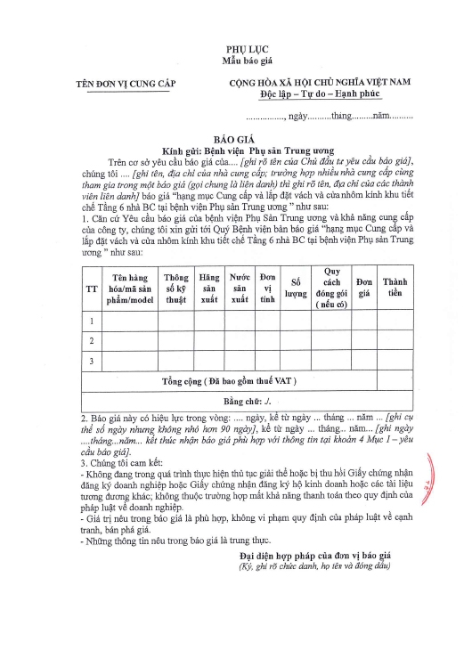 Kính gửi: Các hãng sản xuất, nhà cung cấp tại Việt Nam