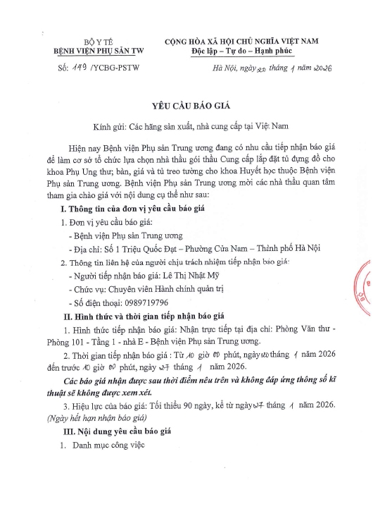 Yêu cầu báo giá số 149/YCBG-PSTW ngày 20/01/2026