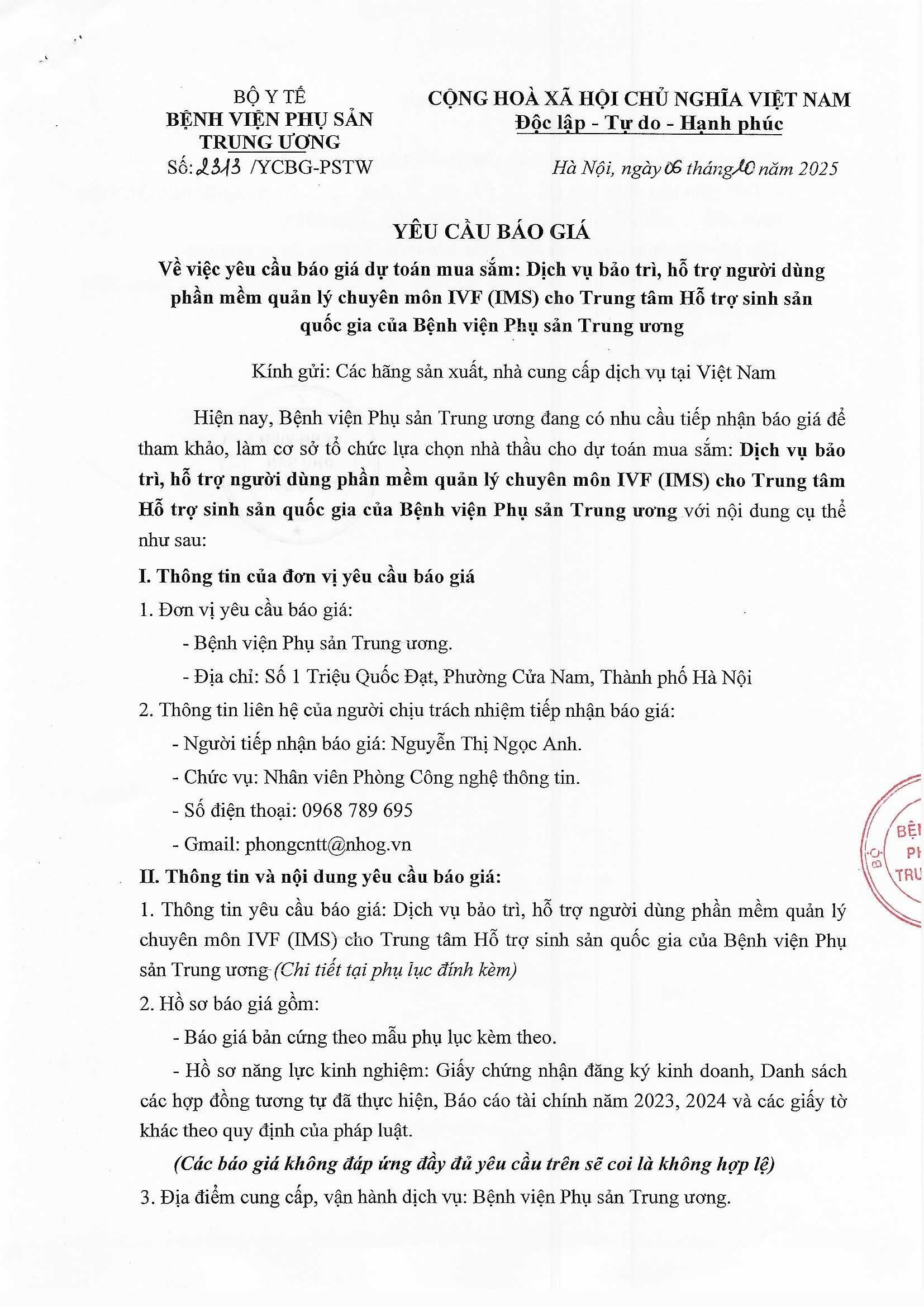 Kính gửi: Các hãng sản xuất, nhà cung cấp tại Việt Nam