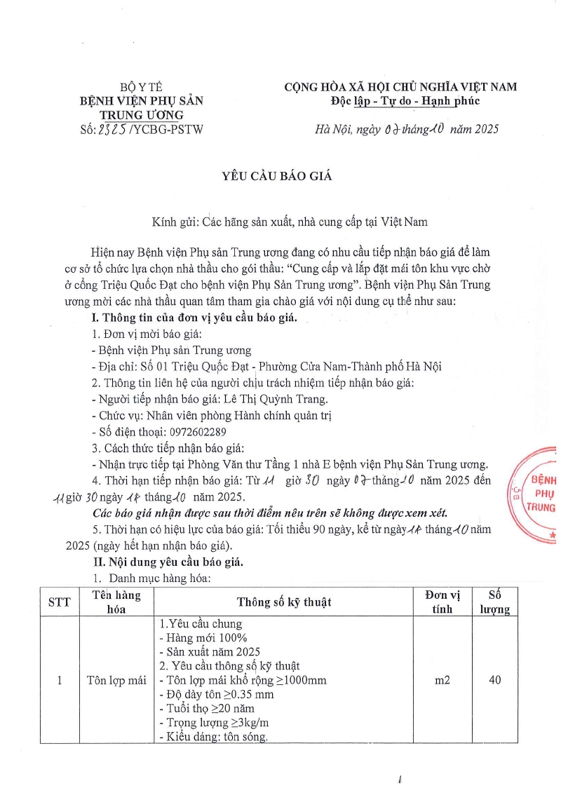 Yêu cầu báo giá số 2325/YCBG-PSTW ngày 07/10/2025