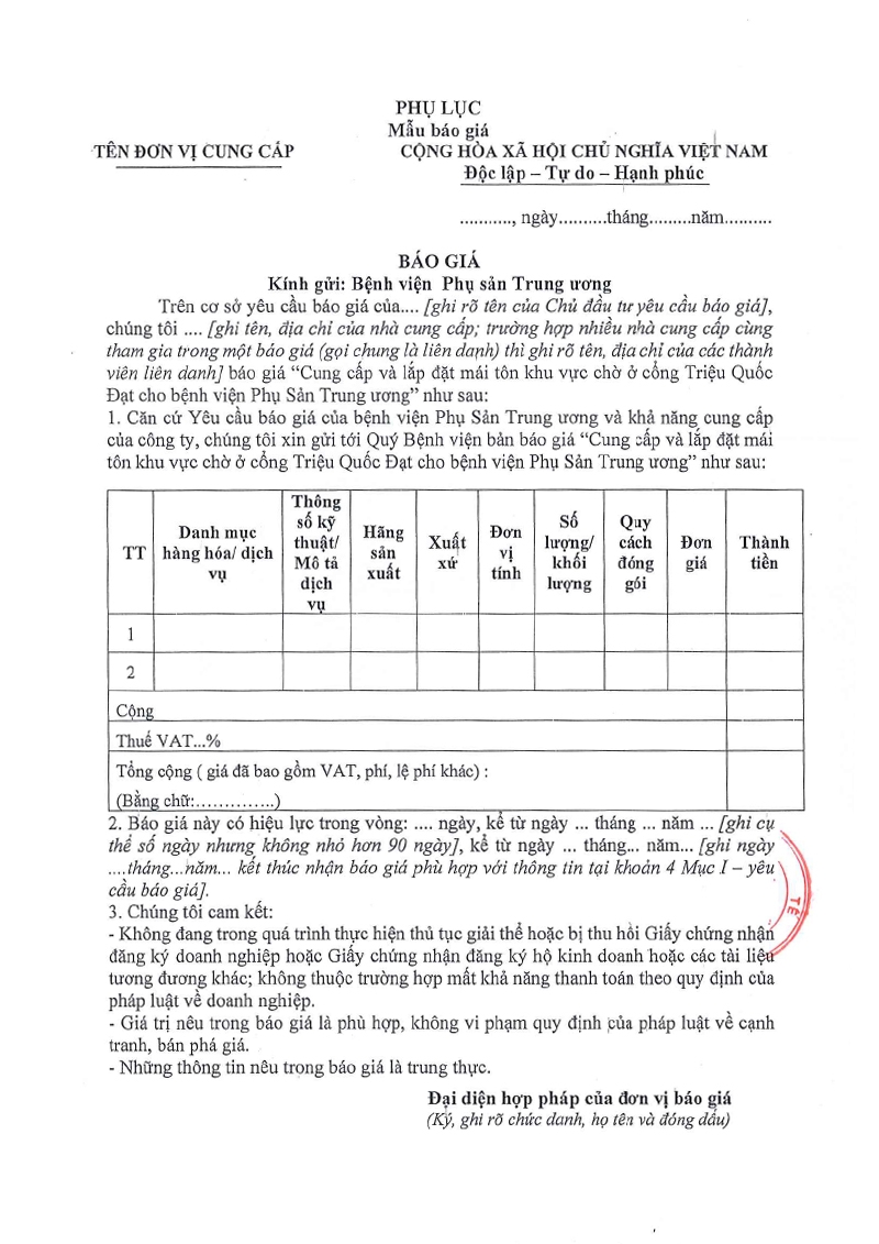 Kính gửi: Các hãng sản xuất, nhà cung cấp tại Việt Nam