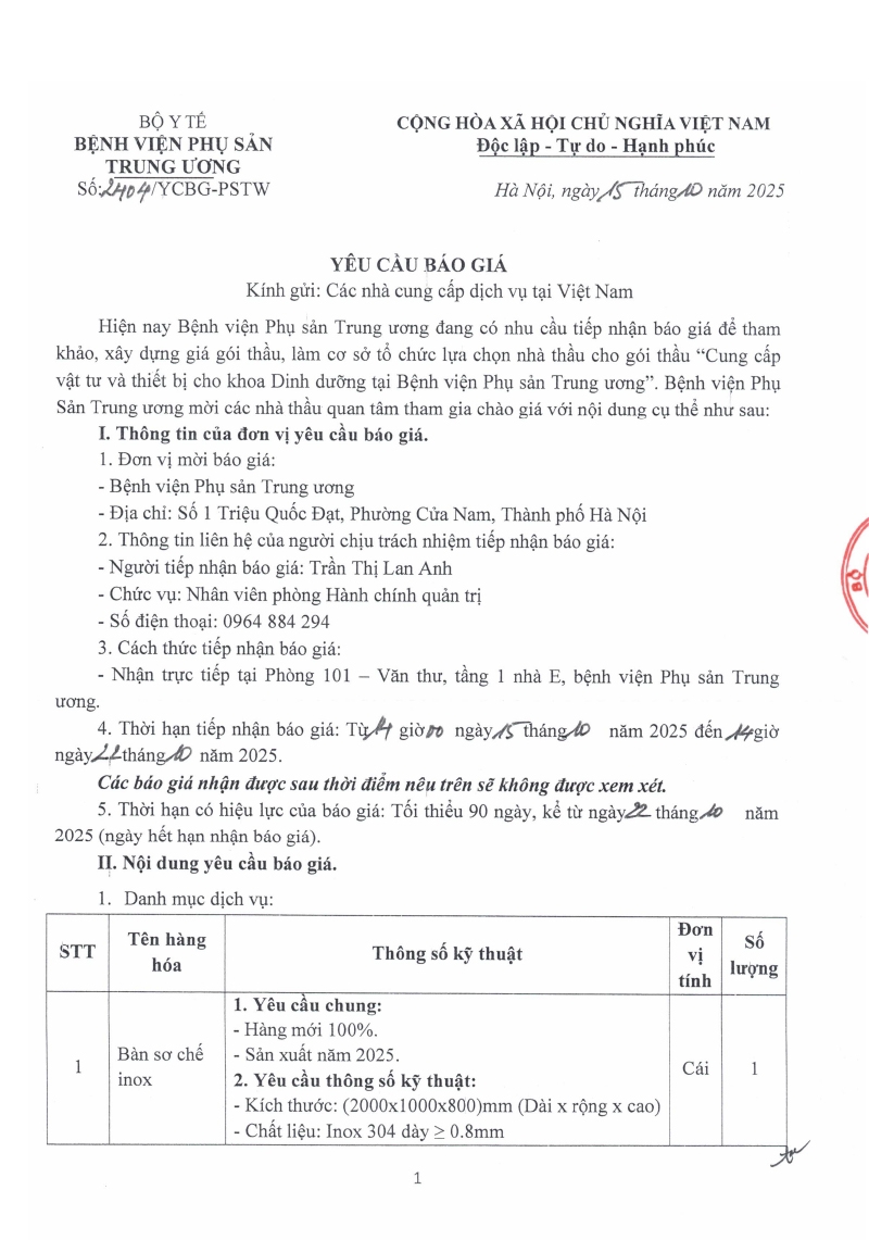 • Yêu cầu báo giá số 2374/YCBG-PSTW ngày 13/10/2025