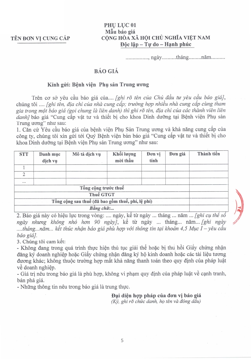 Kính gửi: Các hãng sản xuất, nhà cung cấp tại Việt Nam