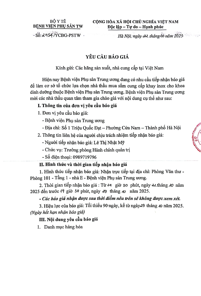 • Yêu cầu báo giá số 2379/YCBG-PSTW ngày 13/10/2025