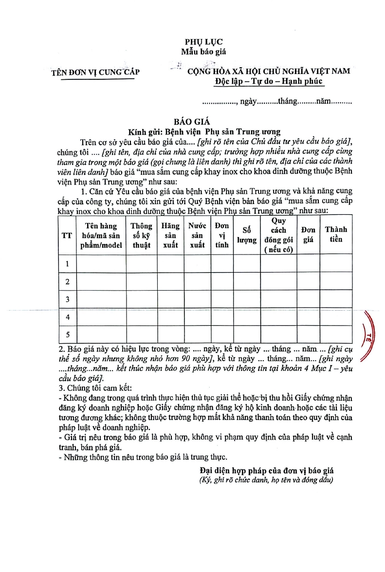• Yêu cầu báo giá số 2377/YCBG-PSTW ngày 13/10/2025