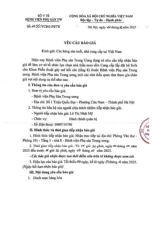 Yêu cầu báo giá số 2455/YCBG-PSTW ngày 22/10/2025