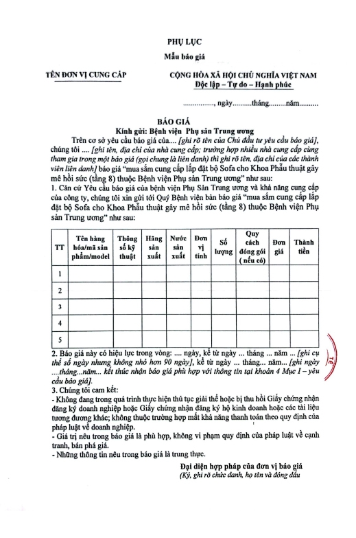 Kính gửi: Các hãng sản xuất, nhà cung cấp tại Việt Nam