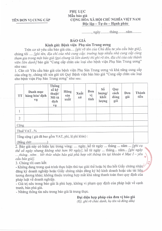 Kính gửi: Các hãng sản xuất, nhà cung cấp tại Việt Nam