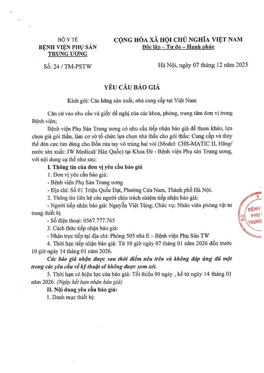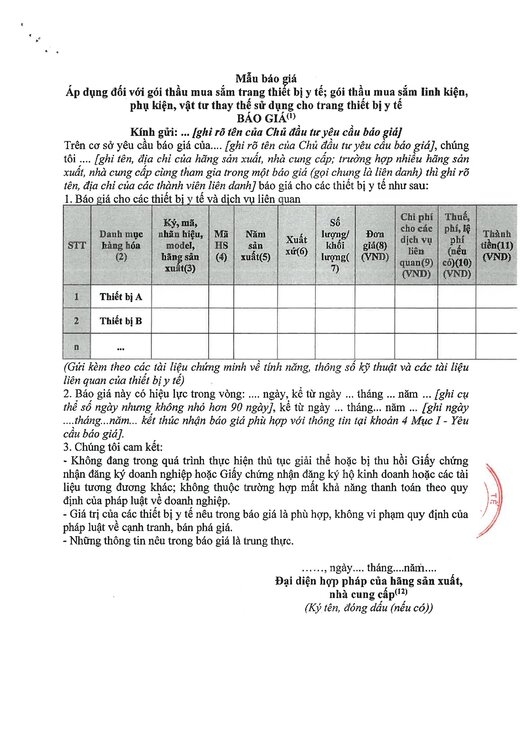 Kính gửi: Các hãng sản xuất, nhà cung cấp tại Việt Nam