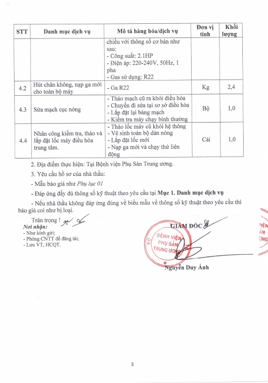 Kính gửi: Các hãng sản xuất, nhà cung cấp tại Việt Nam
