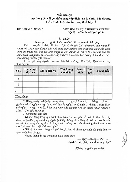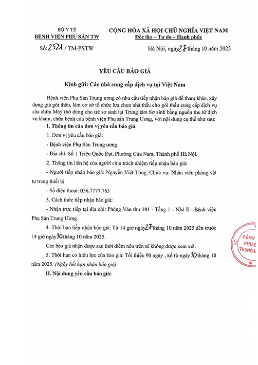 Kính gửi: Các hãng sản xuất, nhà cung cấp tại Việt Nam
