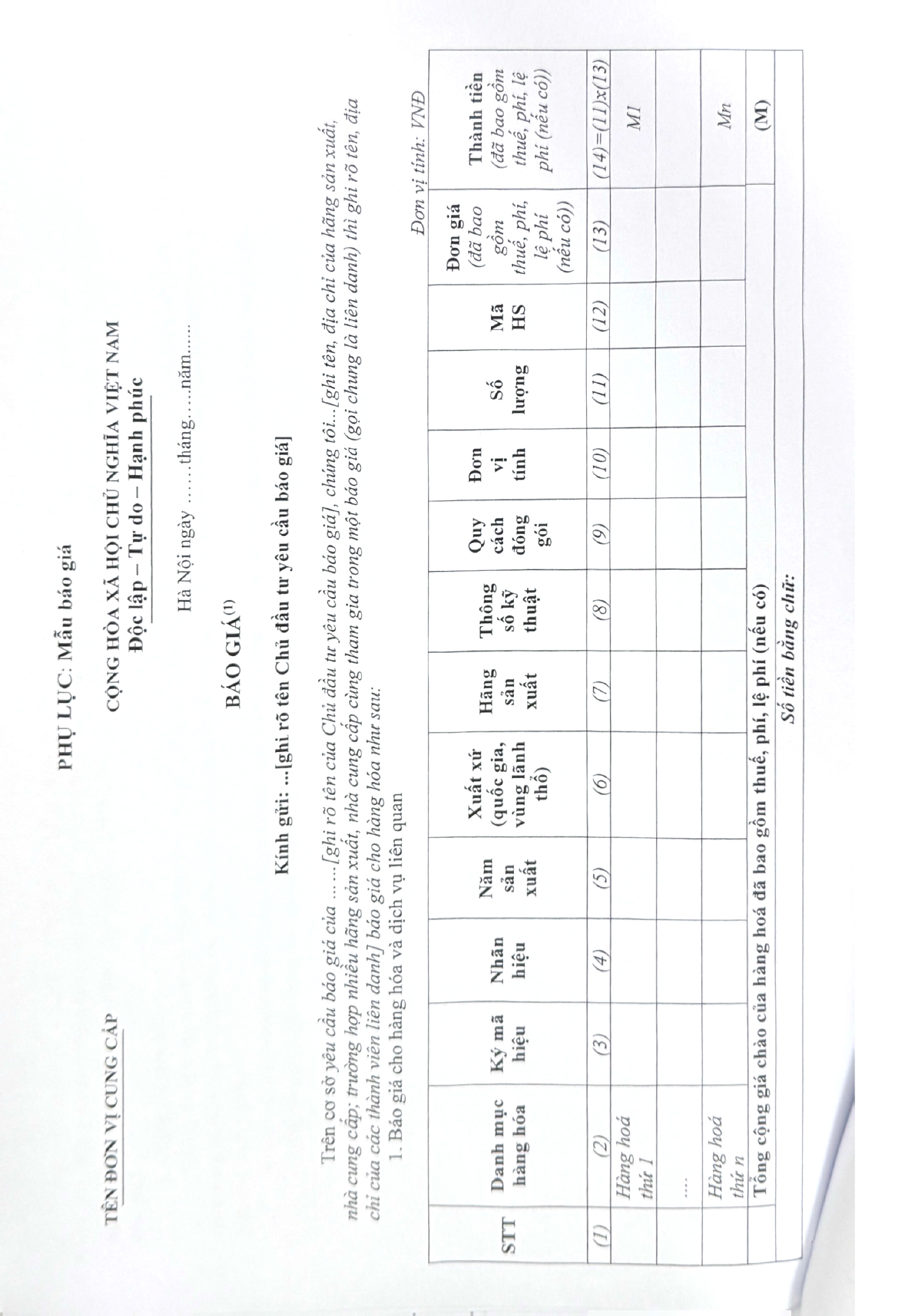 Kính gửi: Các hãng sản xuất, nhà cung cấp tại Việt Nam