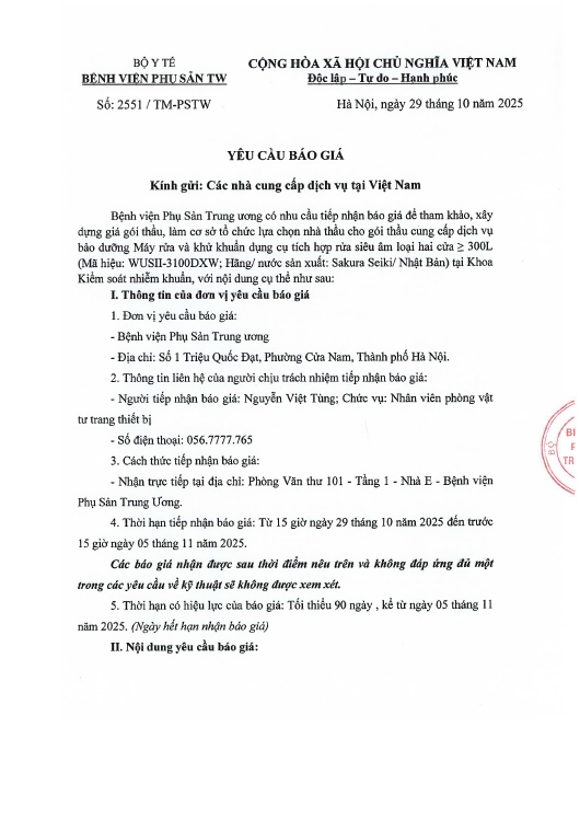 Yêu cầu báo giá số 2551/TM-PSTW ngày 29/10/2025
