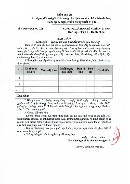 Kính gửi: Các hãng sản xuất, nhà cung cấp tại Việt Nam