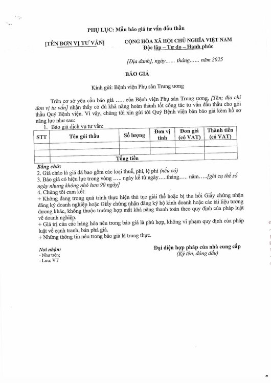 Kính gửi: Các đơn vị cung cấp dịch vụ tư vấn