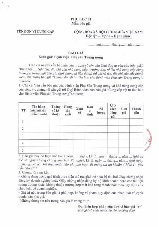 Kính gửi: Các hãng sản xuất, nhà cung cấp tại Việt Nam